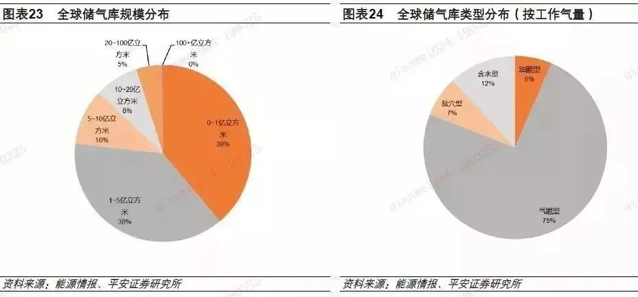 統(tǒng)計表明,全球地下儲氣庫平均工作氣量為5.5億立方米,工作氣量規(guī)模小于5億立方米的地下儲氣庫為549座,占比77%;4種類型地下儲氣庫中,氣藏型地下儲氣庫工作氣量最大,約占總工作氣量的75%,含水層型地下儲氣庫占12%,鹽穴型地下儲氣庫占7%,油藏型地下儲氣庫6%。