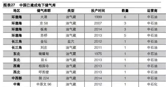20世紀90年代初,為確保北京、天津的安全供氣,國家開始加大力度研究建設地下儲氣庫技術。2001年,我國首次在大港油田利用枯竭凝析氣藏建成了大張坨地下儲氣庫。2005年,西氣東輸?shù)谝蛔}穴儲氣庫—金壇儲氣庫開工建設,為長三角地區(qū)調峰保供發(fā)揮了重要作用?!笆晃濉币詠?,隨著國內骨干管網(wǎng)的建成投產(chǎn),為滿足全國八大地區(qū)不斷增長的天然氣市場需求,中國政府積極推進地下儲氣庫建設,目前全國已建成地下儲氣庫25座(24座分布在長江以北地區(qū)),在環(huán)渤海、長三角、西南、中西部、西北、東北和中南地區(qū)均有分布,其中中國石油23座(鹽穴型1座,油氣藏型22座),中國石化2座(鹽穴型1座,油氣藏型1座),儲氣規(guī)模達400億立方米,天然氣調峰量為100億立方米。